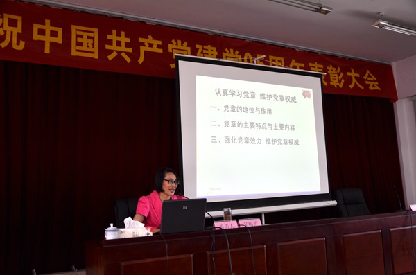 吳梅芳教授為大家作了題為“認真學(xué)習(xí)黨章、維護黨章權(quán)威”的專題黨課。她從黨章的地位和作用、黨章的主要特點與主要內(nèi)容以及強化黨章效力、維護黨章權(quán)威等方面詳細解讀了黨章的總綱、條文內(nèi)容與邏輯結(jié)構(gòu)。她用樸實的言語、典型的事例全面系統(tǒng)的解讀了黨章的地位和作用、黨章主要特點和主要內(nèi)容,詮釋了認真學(xué)習(xí)黨章、嚴格遵守黨章的重要性,闡述了強化黨章效力、維護黨章權(quán)威的現(xiàn)實意義。