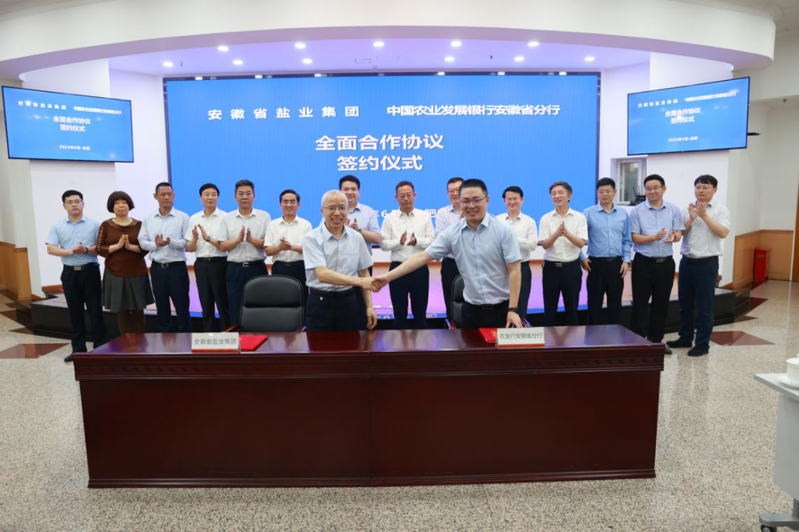 省鹽業(yè)集團公司總會計師李明,農發(fā)行安徽省分行黨委委員、副行長侯崢,以及雙方有關部門負責同志參加簽約儀式。