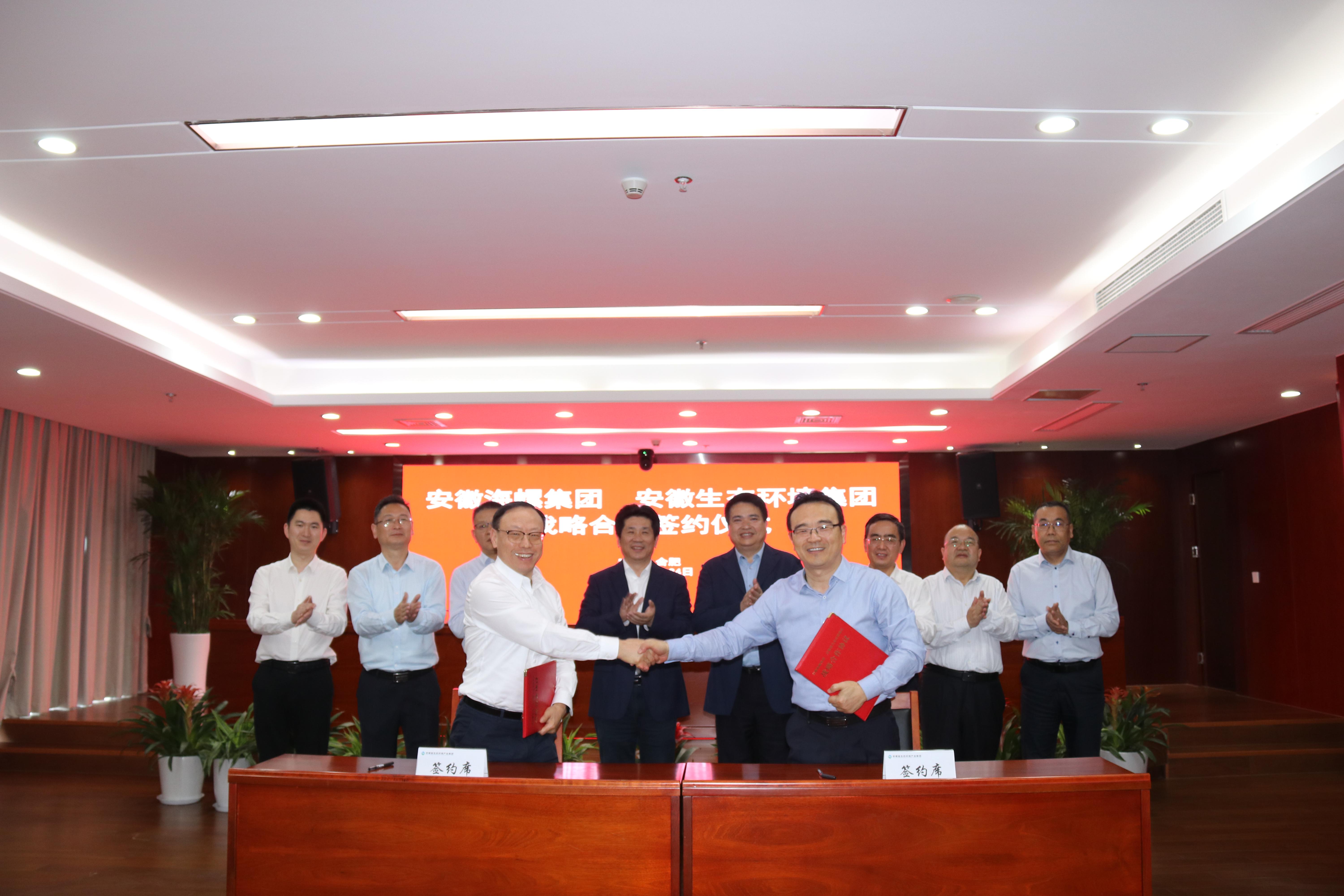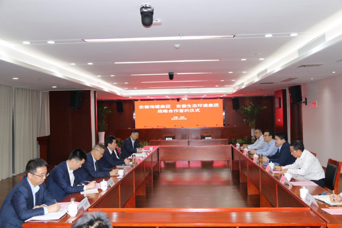 省生態(tài)環(huán)境集團(tuán)黨委委員、副總經(jīng)理王奇,海螺集團(tuán)黨委委員、副總經(jīng)理吳斌代表雙方簽署戰(zhàn)略合作協(xié)議。安徽環(huán)境科技集團(tuán)、安徽順朝公司、海螺水泥、海螺環(huán)保以及雙方有關(guān)部門(mén)負(fù)責(zé)同志參加會(huì)議。