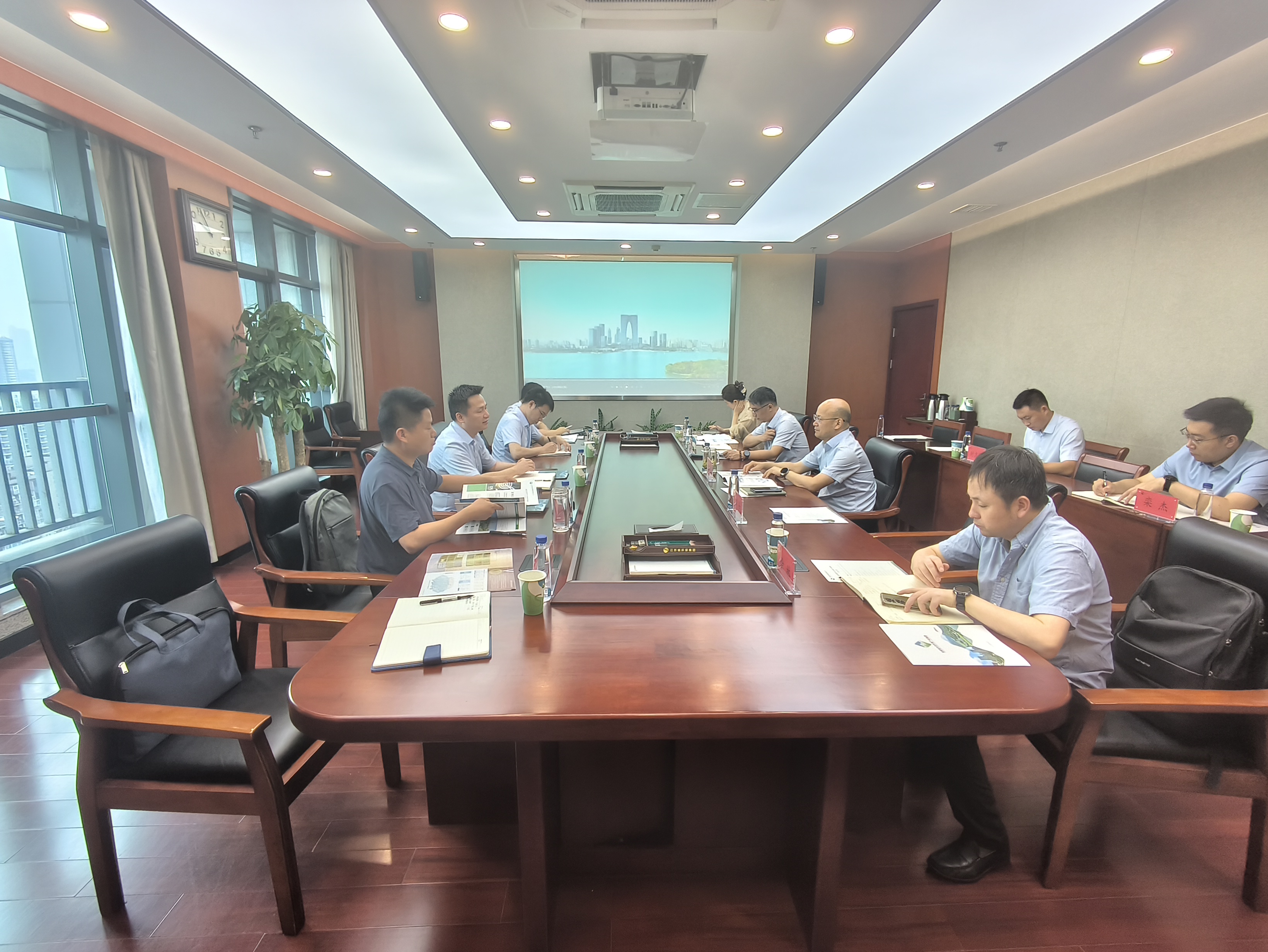 在江蘇省環(huán)保集團,繆磊與江蘇省環(huán)保集團黨委委員、副總經(jīng)理陸繼根舉行工作會談,雙方重點圍繞業(yè)務(wù)板塊布局、市場開發(fā)、科技創(chuàng)新、市縣合資合作以及省直廳局有關(guān)支持政策等方面進行了深入交流??娎谥赋觯不帐∩鷳B(tài)環(huán)境集團在努力承接好安徽省生態(tài)文明建設(shè)重大戰(zhàn)略、重大工程、重點任務(wù)的同時,全力服務(wù)和融入長三角一體化發(fā)展大局,全面加強與長三角省級環(huán)保集團的交流和合作,江蘇省環(huán)保集團成立以來采取了許多創(chuàng)新舉措、承接了一批重點任務(wù)和重大工程,值得學(xué)習(xí)和借鑒,希望雙方能夠進一步建立合作對接機制,攜手共建綠色美麗長三角。陸繼根對繆磊一行的到訪表示歡迎,詳細介紹了江蘇省環(huán)保集團的發(fā)展歷程、職能定位、板塊布局、科技創(chuàng)新及業(yè)務(wù)開展情況,希望雙方進一步加強了解、互通有無,尋求合作切入點,加快推動合作,實現(xiàn)互利共贏。