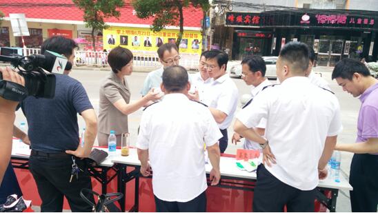 南陵縣常務(wù)副縣長(zhǎng)瞿輝陪同檢查組一行查看食鹽市場(chǎng)和食品安全宣傳周活動(dòng)現(xiàn)場(chǎng)
