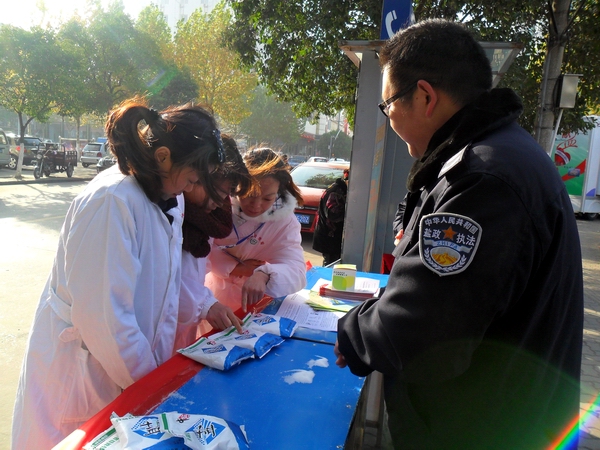 在本次活動(dòng)中,阜陽(yáng)市局設(shè)立宣傳咨詢臺(tái),宣傳展架4個(gè),擺放精心準(zhǔn)備的宣傳資料和傳單,展示近期在市場(chǎng)查獲得各類假冒鹽品,現(xiàn)場(chǎng)接受市民咨詢散發(fā)宣傳單300余份,向群眾宣傳普及鹽業(yè)法規(guī),并推出了現(xiàn)場(chǎng)教市民辨別真假碘鹽的活動(dòng),咨詢臺(tái)前觀看宣傳圖版和前來咨詢的群眾絡(luò)繹不絕,廣大市民對(duì)國(guó)家為確保民生,食鹽專營(yíng)的政策深表理解和支持。市領(lǐng)導(dǎo)對(duì)宣傳點(diǎn)進(jìn)行慰問檢查時(shí),對(duì)阜陽(yáng)市的鹽政管理給予了充分肯定和認(rèn)可,并鼓勵(lì)大家再接再厲再創(chuàng)佳績(jī)。