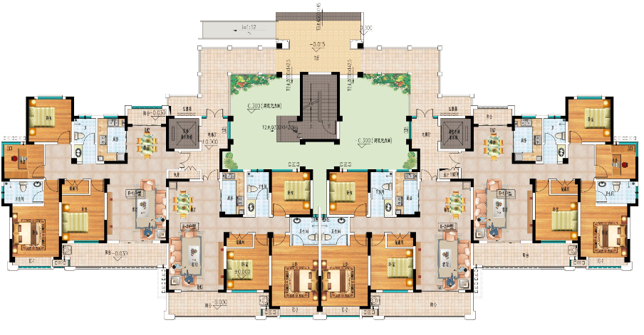 ?、?入戶展示:首層及二層A戶型南北向入戶須體現(xiàn)展示;