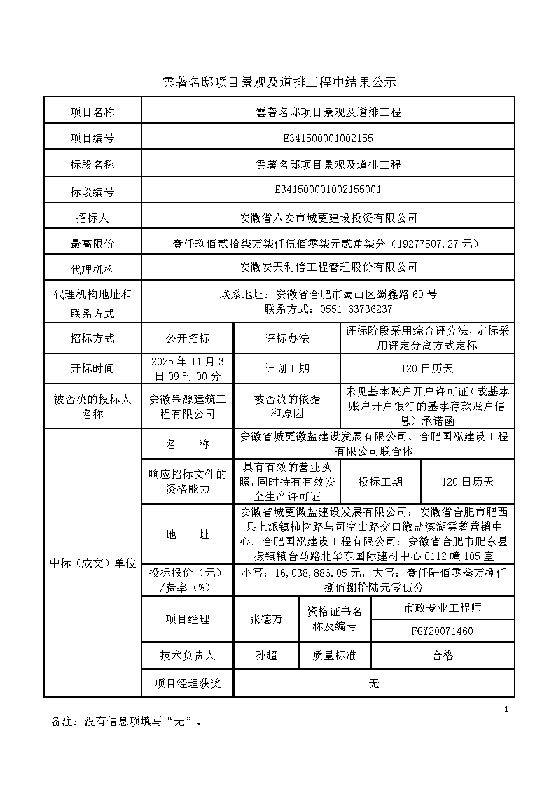 雲(yún)著名邸項目景觀及道排工程中結果公示