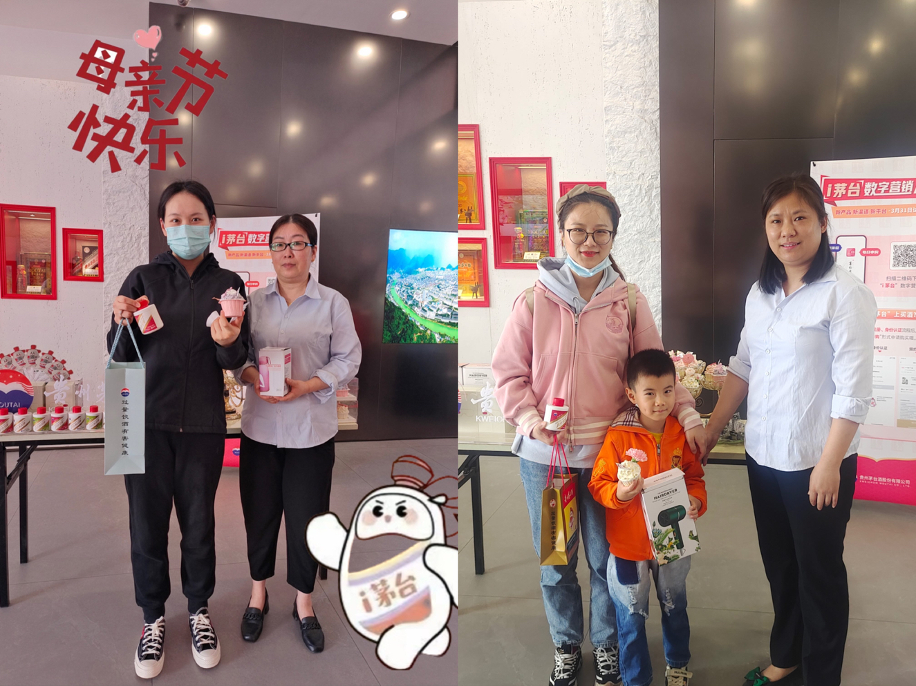 活動(dòng)期間,我們?yōu)檫M(jìn)店客戶準(zhǔn)備了精美蛋糕、水杯等,并為進(jìn)店的媽媽們贈(zèng)送一份茅臺(tái)冰淇淋,希望把最美好的祝福送給每一位女性客戶,讓她們都能感受到濃厚溫馨的節(jié)日氛圍。進(jìn)店參與活動(dòng)的每一位母親都帶著開(kāi)心的笑容,在這個(gè)屬于她們的節(jié)日里,安徽鹽業(yè)商貿(mào)有限公司全體員工真誠(chéng)的祝福所有母親健康快樂(lè)、青春美麗。
