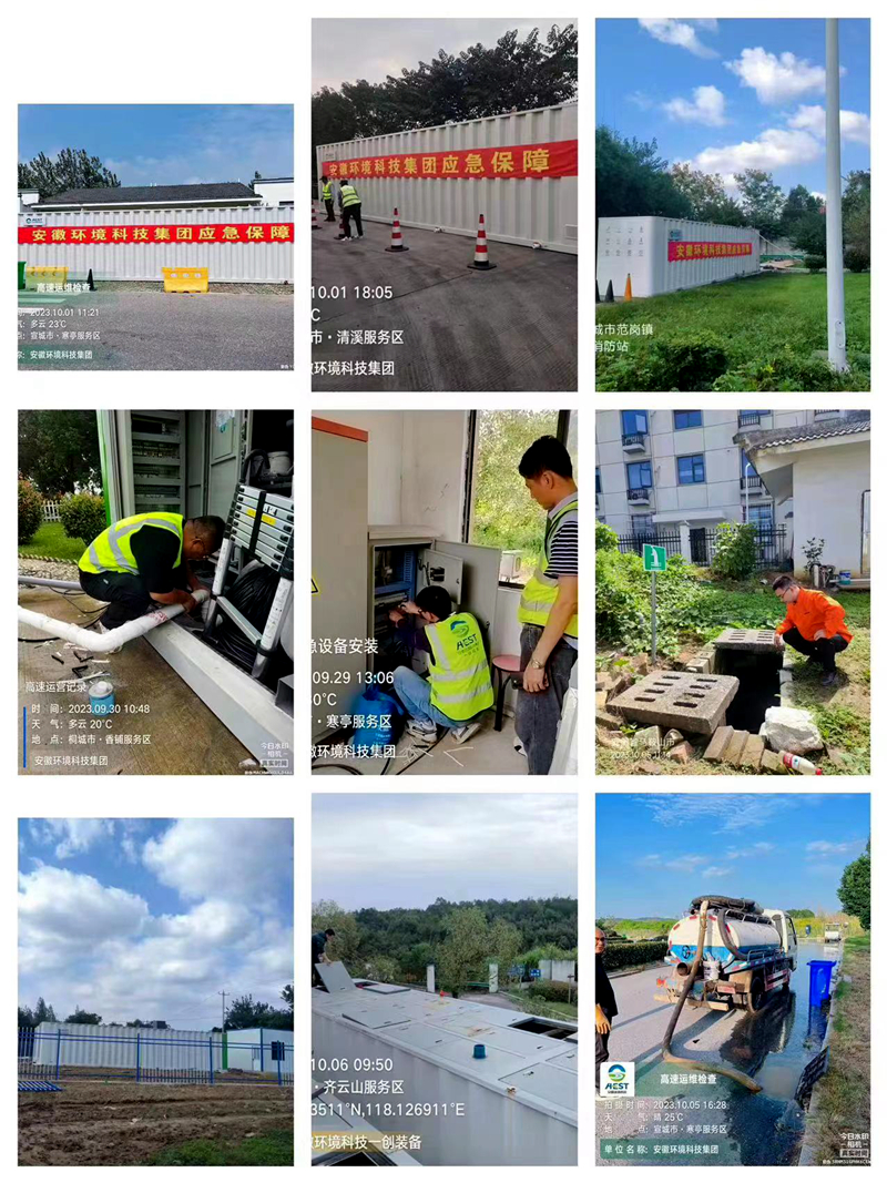 2023年中秋、國(guó)慶假期,是安徽省生態(tài)環(huán)境產(chǎn)業(yè)集團(tuán)掛牌后的第一個(gè)長(zhǎng)假。為確保全省高速服務(wù)區(qū)污水處理項(xiàng)目假日期間穩(wěn)定達(dá)標(biāo)運(yùn)營(yíng),保障人民群眾舒心出行,環(huán)境公司針對(duì)全省高速服務(wù)區(qū)高人流量、高運(yùn)維壓力的特點(diǎn),制定兩節(jié)期間運(yùn)維巡檢方案和巡檢值班表,抽調(diào)本部與各子項(xiàng)目公司30余人協(xié)同作戰(zhàn),在人流量大和生態(tài)敏感區(qū)的重點(diǎn)服務(wù)區(qū)安排專(zhuān)人駐場(chǎng)負(fù)責(zé)污水站點(diǎn)運(yùn)維,在各站點(diǎn)提前儲(chǔ)存藥劑和維修物品,同時(shí)緊急調(diào)配三臺(tái)一體化設(shè)備安裝在寒亭、香鋪、清溪三個(gè)大流量服務(wù)區(qū)以策萬(wàn)全。
