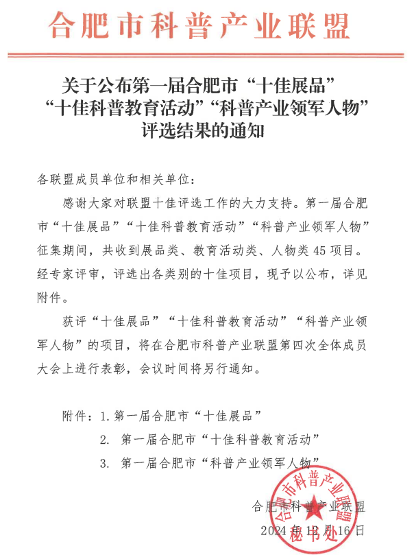 “鹽”學(xué)之旅科普志愿服務(wù)活動,還榮獲過“2024年度長三角優(yōu)秀科技志愿服務(wù)品牌活動”“2024年合肥市志愿服務(wù)大賽銀獎”等殊榮,并獲得中共合肥市委社會工作部5000元的項(xiàng)目資金支持。